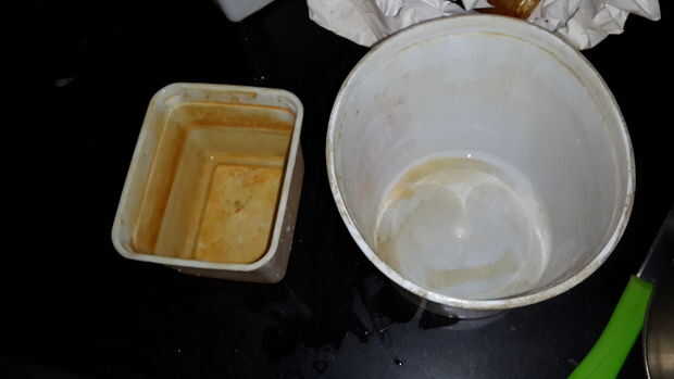 5. 2 recipientes (1 pequeño y 1 grande) (Asegúrese que el obtiene colocado entre un más grande, debe haber espacio entre ellos)