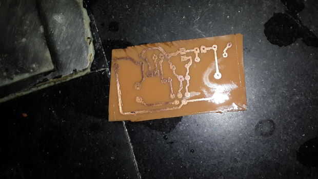 3. cobre grabado químico (cloruro férrico o el peróxido de hidrógeno) (utilicé cloruro férrico)