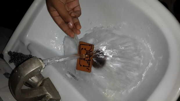 Ahora sostenga el tablero con cuchara o pinzas y lavarlo con agua y asegúrese de que el producto químico se elimina completamente.