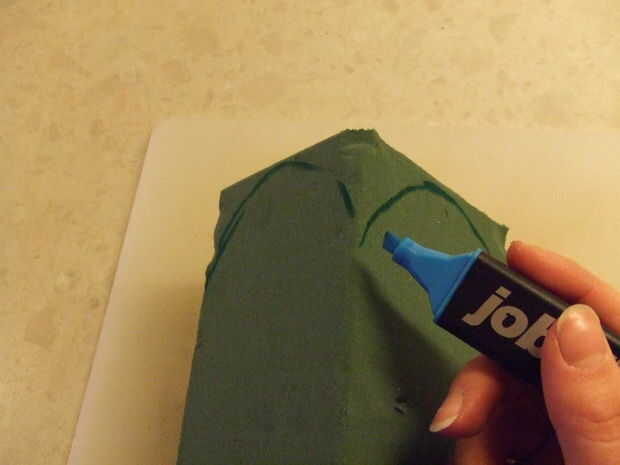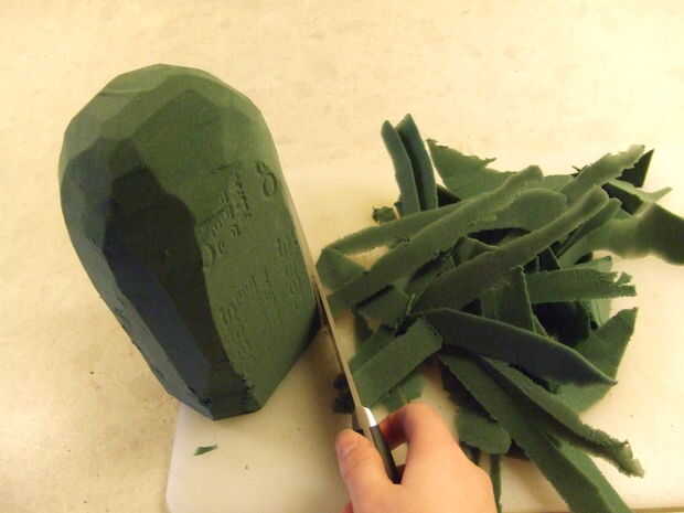 El musgo verde de espuma con un redondeo en la parte superior de la forma. Para hacerlo, dónde cortar y cortar con un cuchillo de la marca.