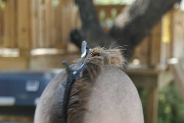 Ok permite obtener graves aquí. Ahora tienes que parte al otro lado de la cabeza y el clip el pelo que permanecerá arriba y fuera del camino. Sólo tienes un disparo este para hacer las cosas bien. Corte al mohawk más amplia que la necesaria y luego volver a parte el cabello en ambos lados para hacer más estrecho hasta que estés satisfecho.