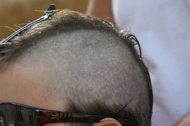 en este momento, espero que su peluquero no muere y tiene que usar su cabello como para siempre... por suerte lo hicimos a través de este paso con seguridad. Tenga en cuenta la buena línea de cabello cortado desde la parte superior.