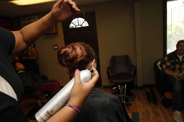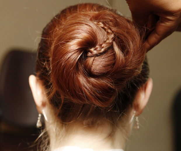 Pulverización con Kenra, que establece un segundo, entonces swoop cualquier cosa que se ha caído no tiene. Para levantar los pelos bebé, utilizar una horquilla para recoger todo y empuje hacia arriba para ocultar.