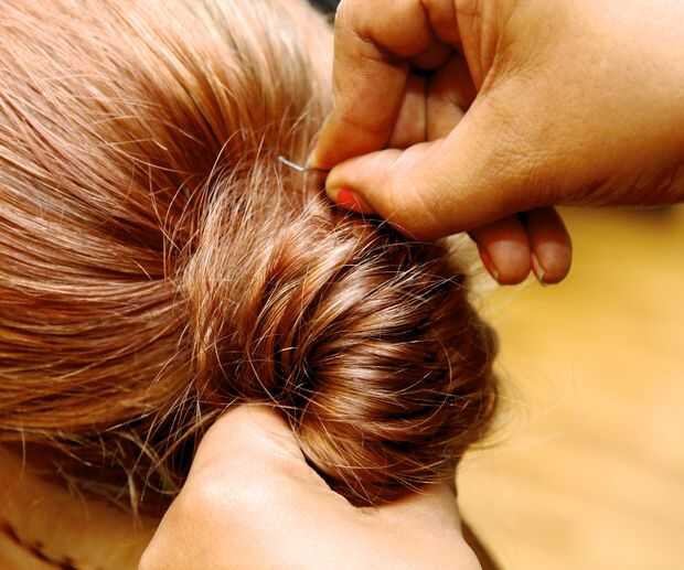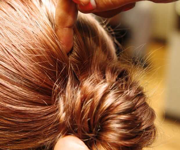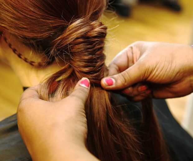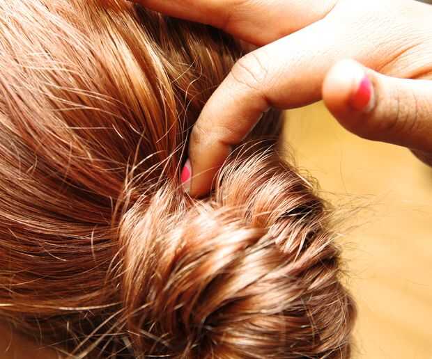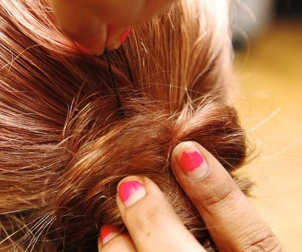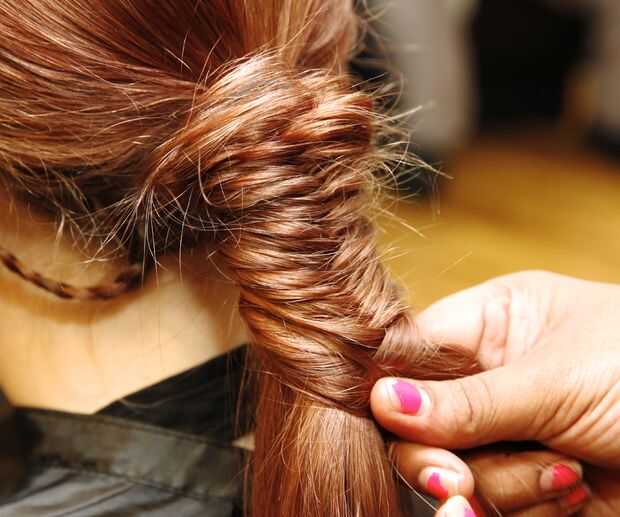 Prosiguió, utilizaba la trenza para ocultar el sostenedor del ponytail y dar la trenza algo de volumen. Usted puede hacer aflojar un poco la trenza y estrújelo para arriba sobre el soporte. Para mantenerla en su lugar, pegar una horquillas o dos en la a de la trenza.