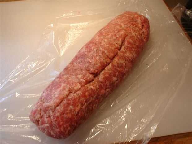 Utilizando uno de los extremos de la tapa de plástico la salchicha en la parte superior del relleno. Repita con el otro lado y asegurarse de que más de vueltas. Empezar a pellizcar los extremos juntos. Si usted tiene cualquier abierto espacios rellenarlas con la carne adicional de los extremos. El Fattie más ser sellados completamente.