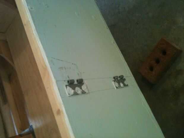 Hacer un tirante/soporte para el timón entre las dos costillas posteriores. Y atornille las dos bisagras en la parte posterior. Unido es también el timón (con la mitad de las bisagras) y la orza