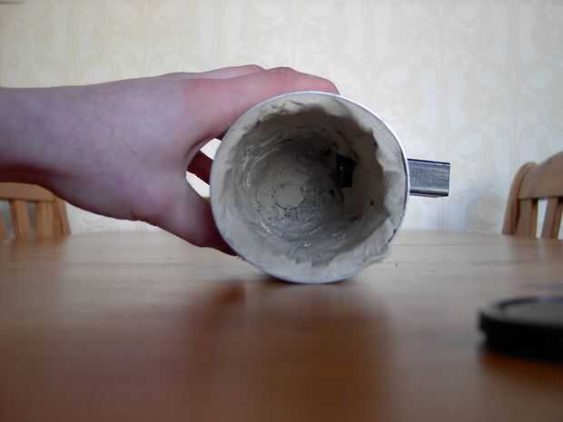 Este es el paso más fácil, aunque hay que ensuciarse las manos. Usando una cuchara o un cuchillo o los dedos, cubra el interior de la lata con material refractario. Que sea bastante suave, demasiado, esto hará que no se encuentre ninguna desagradable remolinos o remolinos dentro de la lata que puede hacer cosas impredecibles. El refractario debe ser entre 1/4 y 1/2 pulgadas de espesor. Mina fue en algún lugar entre los. No obstruir la tubería.