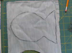 Utilizar un área amplia para hacer el pescado cuerpo en tus jeans viejos, como la parte inferior de las piernas. Esbozar un cuerpo de los pescados y sencilla acerca de 9 "X 5" en el dril de algodón. Estás más que Bienvenido a copiar, pegar y usar mi bosquejo poco tonto, pero creo que probablemente puede hacer mejor que la mía. JAJAJA