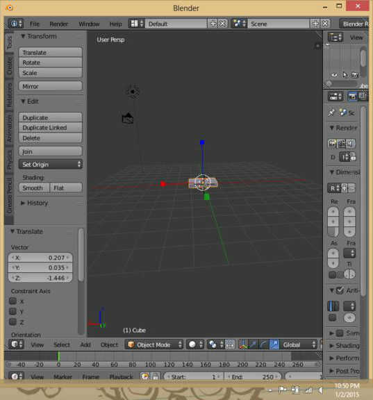 La base es muy importante porque de lo contrario, el modelo no pare. Para ello, debemos importar un cubo a la licuadora y use el manipulador de transformador de escala en la barra inferior. Esto se puede acceder haciendo clic en el símbolo del tricolor en la fila inferior. Luego use el manipulador para hacer el hacer el cubo un fino prisma rectangular.