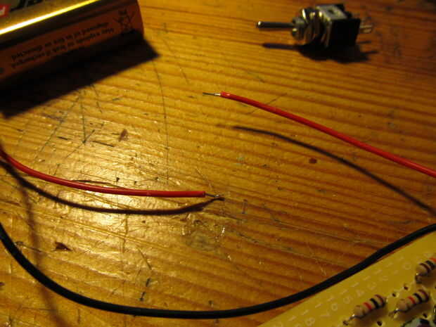 Cortar cable rojo entre la batería y la Junta, los extremos de la tira y les de la soldadura a las puntas de un interruptor. uno central y uno en la punta exterior. Debe cubrir las juntas en tubos termocontraíbles o cinta para hacerlos más fuertes