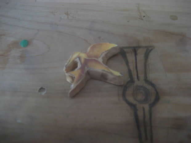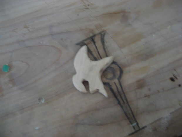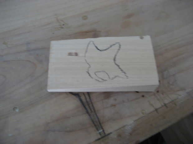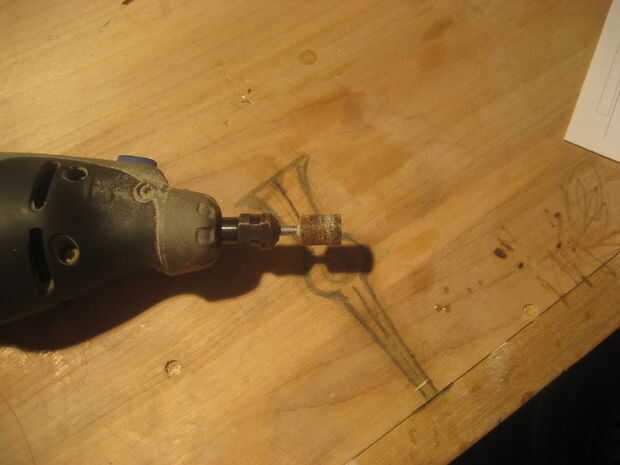 Lo primero que se va a hacer es el pájaro en el centro del perno. Empezar por spliting el bloque de madera de espesor mientras que usted quiere. (foto1) Luego tomar una impresión corte el ave y el rastro en la madera (Foto 2-4) ahora su listo de dremel y cortar la forma de pájaro. (Foto 5) Lo que hice a continuación que es opcional es grabada la imagen del pájaro real a mi corte y utiliza la broca de detalle, un cuchillo de la mano y un poco de lijadora para hacer que las alas parezcan separados y para mejorar el aspecto de la cabeza. (foto 6-7)