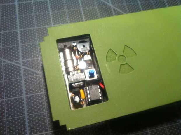 -Si tiene el mismo módulo de Geiger, pegarlo en el interior del plástico pequeño estuche para vino en.