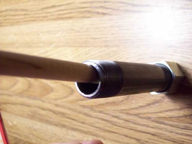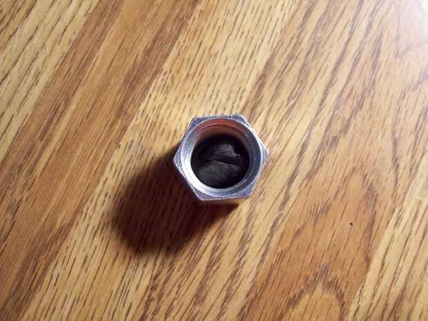 Para montar la cámara, coge tu J-B Weld hexagonal tapa y niple de tubería de acero. Mezclar lo suficiente soldadura J B para llenar la tapa hexagonal para arriba hasta la mitad. También, poner un poco en el niple de tubería de acero. Atornille el niple de tubería de acero en la tapa hexagonal. Tome su pasador y pack/tap la soldadura J-B hacia abajo en la cámara. Después de usted ha embalado/aprovechado la soldadura J B abajo, establecer la cámara vertical en un lugar seguro para pasar la noche por lo que puede secar.