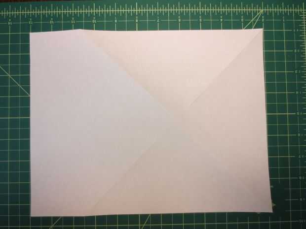 Pliegue una 'X' en la hoja de doblar una esquina, desplegar y luego dobla la otra esquina hacia arriba, luego despliegue.