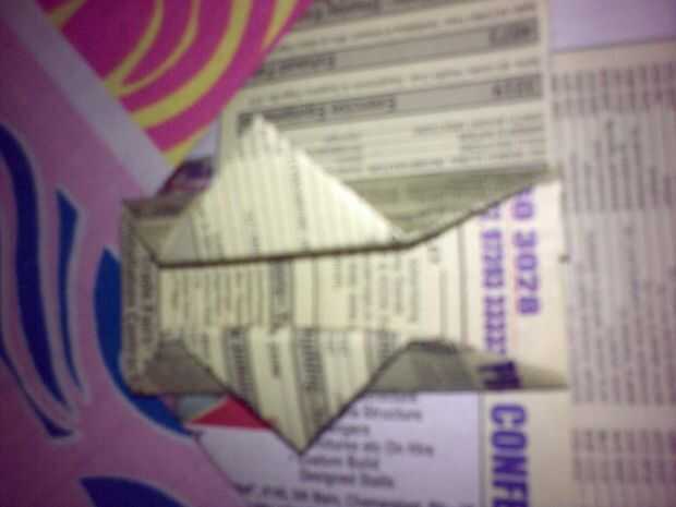 conseguir un directorio telefónico, o un periódicoPaso 1: Cortar una hoja de agenda Asegúrese de que esté limpioPaso 2: Dibujar el patrón de Es es limpioPaso 3: Cortar el patrón Asegurarse de que permanezcan en las líneasPaso 4: Doblar el ala como se