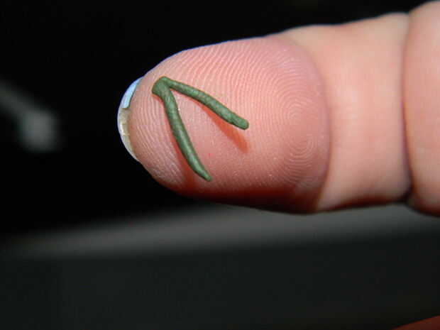 Para hacer los tallos de las cerezas de mezclan un poco de marrón en un poco de verde para obtener una especie de color oliva oscuro, estirar hacia fuera en dos tallos largos. Tampoco se pueden conectar juntos para hacer un par de cerezas, o usted puede hacer dos vástagos separados.