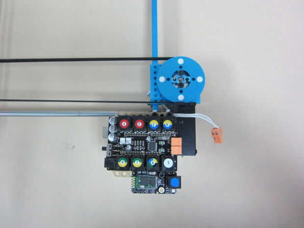 2. instalar Meduino en viga 0824-96 con 2 tornillos M4 x 14 y 6 anillo de plástico 4x7x2mm.