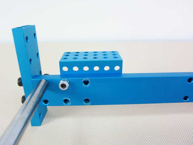 3. Instale el soporte de 3 x 6 en viga 0824-496 utilizando 2 tornillos M4 × 8, 1 tornillo M4 × 14 y 1 contratuerca de Nylon M4.