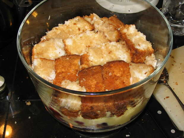 Puede utilizar un licor diferente para cada capa si como - funcionó muy bien para mí esta vez. Esta vez usé brandy de ciruela en la capa inferior, marsala en la capa media y kirschwasser (cereza) en la capa superior. Otras buenas opciones: amaretto (almendra), goldschlager (canela), chambord (frambuesa), triple sec (naranja), crema irlandesa (uno de mis favoritos) o kahlua. Jerez es tradicional, pero no agrega mucho sabor. Ajustar la cantidad y la prueba de licor a sus preferencias.