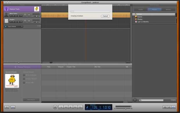 Una de las razones de que mi flujo de trabajo incluye GarageBand es porque no sabía lo que quería usar para nuestra introducción la música. No tenemos ninguna y sentía mal. Shady jugó con la idea de hacer algunos para nosotros, y si lo hace siempre será conseguir actualizada nuestra música. Audacity no tiene lazos ni instrumentos de música (no es ese tipo de software), pero es GarageBand. Además de darle los instrumentos para hacer canciones, GarageBand te ofrece una serie de bucles. No tenía ganas de para fregar el internet cuando tenía nuestro primer podcast listo para subir. Tuve unas pocas horas para terminar y subir, así que en lugar de pasar todo el tiempo escuchando música en línea gratis para ver lo que podría funcionar mejor, que acabo de hacer una carrera rápida a través de todo lo en su sección de loops GarageBand. Estaba muy contento con la seleccioné y varios otros que he escuchado en otros podcasts. Si tienes algún tiempo libre antes de que usted está pensando en lanzar su podcast, sugeriría revisar algunos de estos sitios, como que están llenos de recursos de audio para usted.