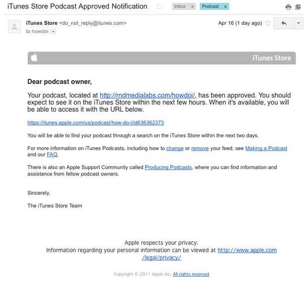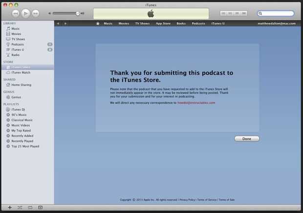 Ahora que iTunes está todo cuidado, ¿qué tan duro lo que piensa presentar en el mercado de Zune va a ser? Bien, usted puede saltar a esta página y desplácese hasta la parte inferior. Ahora Desplácese hacia arriba sólo un poco más a la sección "Cómo enviar un Podcast". Resulta que hay dos opciones. Se requiere que haya software de Zune, que no y realmente no quería. Afortunadamente, la segunda opción es enviar un correo electrónico, que parece realmente simple. Les enviará por correo electrónico el enlace y me llego un mail un día más tarde hacerme saber todo estaba en orden.