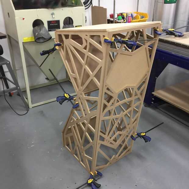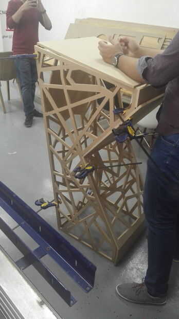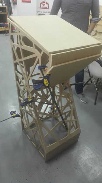 Después de cortar todas las piezas, es momento de armar nuestro podio. En este paso, necesitará utilizar cola para madera y luego usar agarre rápido para unir todas las piezas.