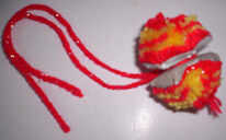 Una vez que todos los bordes se cortan, gire a la izquierda sobre el pedazo de hilo y atar la parte media entre las donas cartón asegurándose de que usted tiene un nudo bonito. Cortar las donas cartón el.