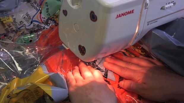 Coser la capucha en el cuerpo, asegurándose de que coser todo el camino alrededor del agujero.