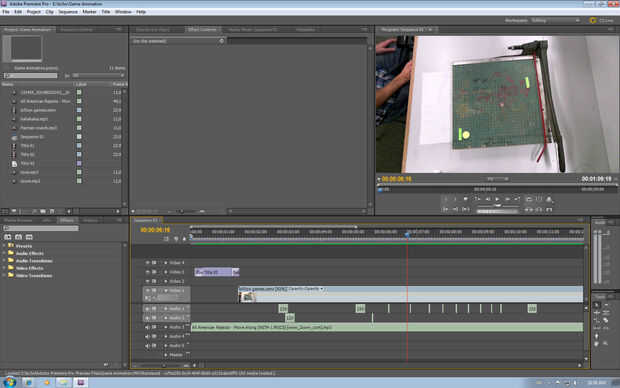 Una vez que completado la animación, cargué en Adobe Premiere para agregar efectos de sonido. Todo lo que tenía que hacer era probar y línea de los sonidos con las acciones de cada juego. Usé un tono de teléfono el sonido de la bola golpeando los ladrillos. Se puede utilizar a todo tipo de sonidos diferentes. Depende de usted. Ser creativo.