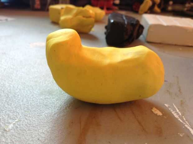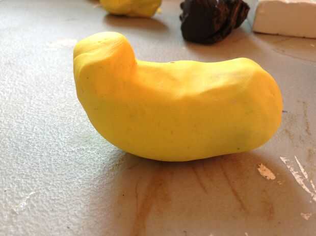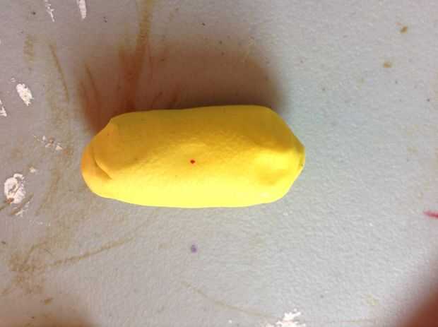 Para que el cuerpo tome la primera arcilla de color y empezar a formar para que se vea como el cuerpo y el cuello de un caballo. (Punta) Pellizca ligeramente alrededor de la mitad del cuerpo para darle una mejor forma.
