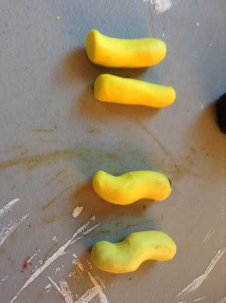 Tener cuatro bolas de la primera arcilla del color, tener dos bolas de arcilla más pequeño que los otros dos. Luego, hacerlas rodar hasta que parecen perritos calientes. Después de eso, todo lo que necesitas hacer es aplanar un extremo de la "pizza" para hacerlo en forma de pezuña. Para hacer las patas traseras, tomar los enganches más grandes tienes y hacer que vaya hacia adentro un poco en la parte superior (el final no aplanar).