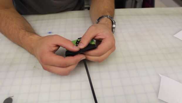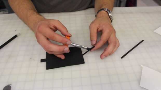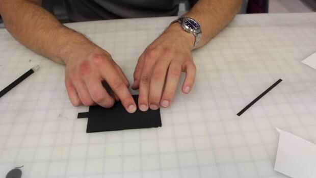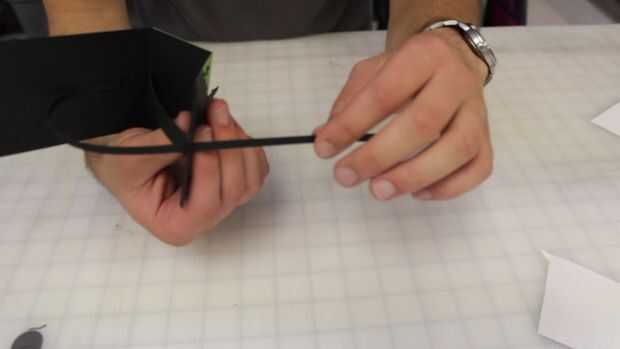 Puse la lengüeta a través de la ranura en el pliegue medio y luego poner la pista a través de la hendidura en el labio. Luego recortar la pista, había doblado en la parte posterior de la tarjeta y había pegado en lugar.