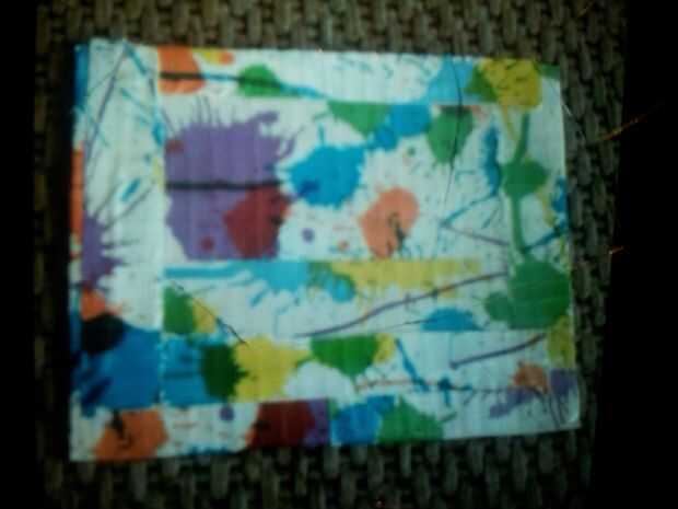 Coloque cinta en tres lados, dejando un lugar en la parte superior para abrir un bolsillo para colocar su dinero. Lugar y cinta plástica/claro en el frente de la cartera dejando un lugar abierto para deslizar y su id de im