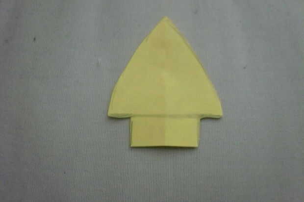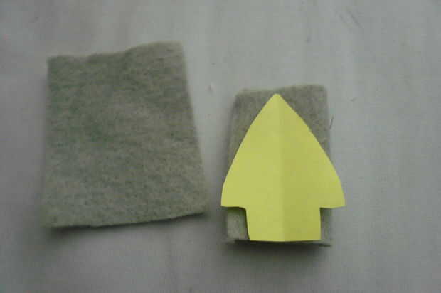 ¿-Para los oídos: recuerde los seis 2.5 en x 2 en rectángulos de los triángulos? Hemos utilizado cuatro de los triángulos! Eso significa que tenemos dos sobras para hacer dun dun dun ~ orejas! He doblado en la mitad y trazado de un patrón auditivo que dibujaba en un Post-it y recorto. Como es con este proyecto, doblando por la mitad, tenemos dos capas lo! Corte hacia fuera, luego coser juntos usando una puntada oversewing/manta.