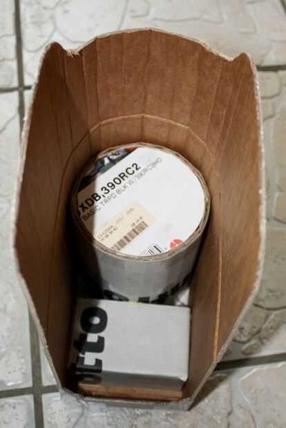 1. envuelve un pedazo de cartón de mi copa favorita que forma un cilindro. Graba los extremos entre sí. Para hacerla más robusta, me envuelve otra pieza de cartón alrededor de la primera de ellas y había asegurado con cinta, también. Usé el interior del cilindro como una plantilla para recortar la parte inferior del cilindro (una vez cortada, ponerla en el cilindro y asegure con cinta). Luego fui a mi coche para ver donde exactamente quiero instalar el cilindro. He decidido que tiene que ir justo en frente de la titular de la moneda, porque de lo contrario, habría sido a alto.