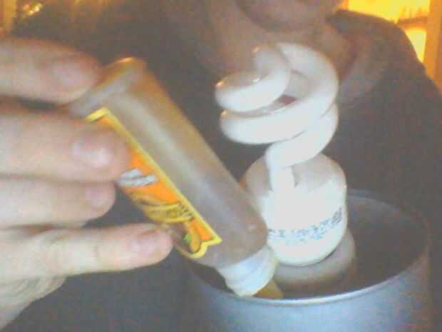 Toma tu alambre y empujar a través de la lata asegurándose de que la lata se coloca vertical cuando está abierto, ahora empujar la lata por el polo y tomar tus alicates y apretar el metal alrededor de él, ahora toma tu pegamento gorila y bond la lata al polo y cinta adhesiva firmemente para wont slip, esperar 24-48 horas para el pegamento completamente seco. Ahora tome su tarro de aceitunas y pegar el círculo de plástico a la parte superior, hice mi círculo en más de un cono por corte al centro que doblarlo grabando en forma de cono y pegar el plástico.