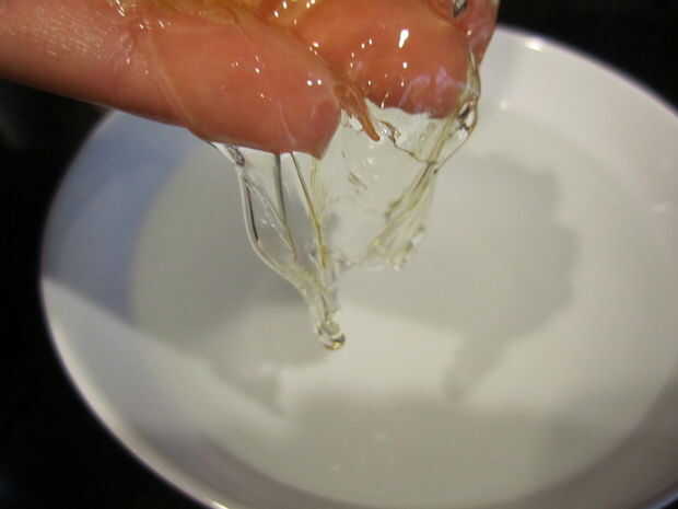 Sumerja la hoja de gelatina en un tazón de agua fría hasta flexible (esto debe tomar alrededor de 45-60 segundos, pero dependerá de la temperatura del agua por lo que no a pie. Aprendí esto la manera dura, cuando los "desaparecidos" de mi primera hoja de gelatina en el agua!). Una vez que es flexible sacar el agua y exprima el exceso de agua con la mano. Colocar en una cacerola con la mezcla de crema caliente/azúcar. Revuelva hasta que se disuelva. Agregue la pulpa de guanábana. Mirando la mezcla para evitar que los trozos de gelatina que no podría haber disuelto. Vierta la mezcla en su vajilla de servicio deseado. Con cuencos poco profundos como el que usé, parece más fácil rellenarlos una vez que ya están en la nevera. Llevará alrededor de dos horas para un medio de capa delgada en la nevera.