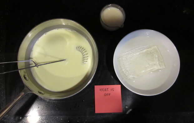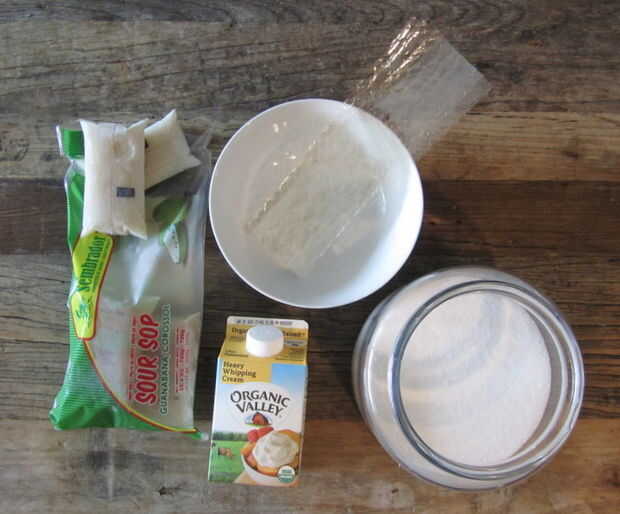 Nota: Guanabana ha sido definida a mí por algunos como un "gusto adquirido", por lo que no dude en cambiar la pulpa de la fruta se utiliza para algo más. Usé la Guanabana porque no sería teñir la leche demasiado, manteniendo el fondo blanco que estaba buscando. Además, he encontrado que la marca de guanábana afecta la textura del postre mucho, por lo que recomiendo La Fe, que hasta ahora ha producido los mejores resultados.