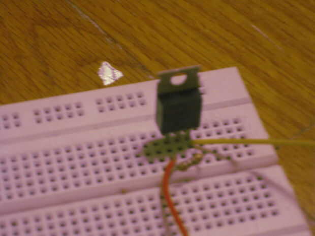 Soldar el cable positivo de la batería con el conector adecuado en el LM317. La soldadura de la resistencia de 10 ohm entre el pin central y el eje izquierdo. Luego de la soldadura el láser positivo a la patilla izquierda y el negativo directamente al negativo de la batería. La imagen muestra una resistencia de 5 ohm, pero debe ser un 10 ohmios. Si utilizas un 5 ohm, que todavía funciona y el láser será más poderoso, pero acortará la vida del diodo.