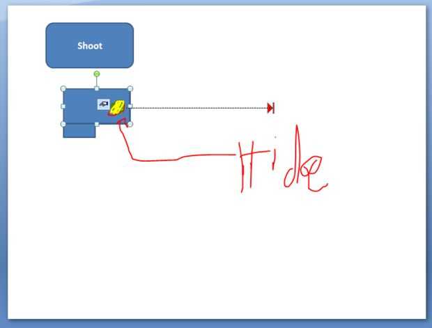 Para ocultarla, haga clic con el botón derecho del rectángulo horizontal que hiciste en el paso 1 y "seleccione trae al frente" y arrastre su bala al rectángulo horizontal. Hecho!