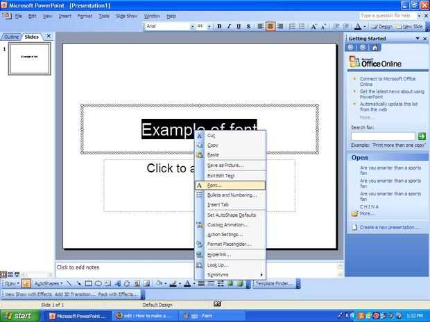 Para cambiar el color de la fuente; Haga clic en, sujetar el ratón y arrastre el puntero sobre la palabra. luego haga clic derecho. Luego simplemente haga clic en fuente.