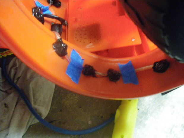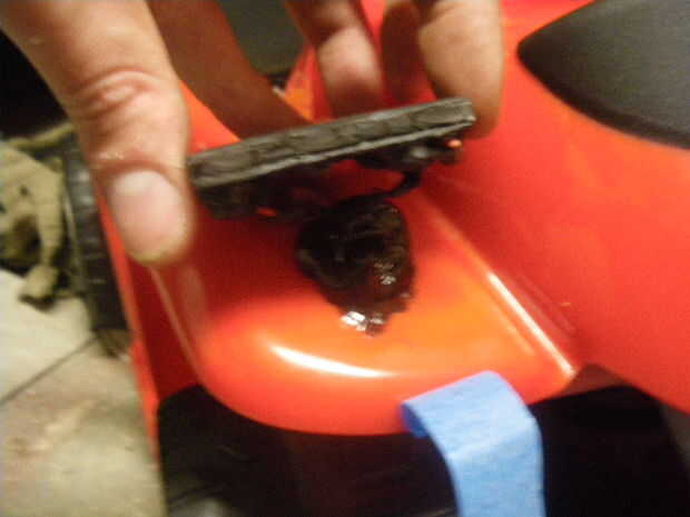 Me pegué al cuerpo plástico del quad usando algunos masilla de silicona negra que tenía por ahí. No es bastante, pero funciono.