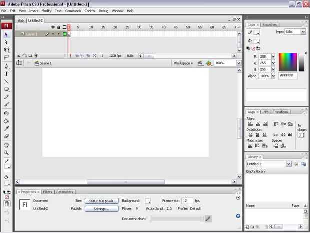 Obviamente, abrir Flash y hacer un nuevo archivo de Flash. Estoy usando Actionscript 2, por cierto.