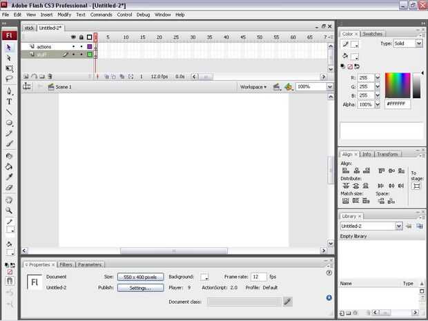 A continuación, tenemos que añadir un fotograma clave a la capa de acciones y un marco a la otra capa.