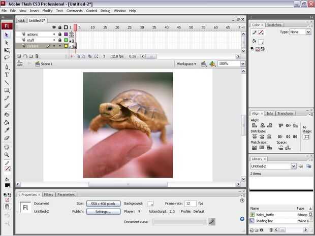 Ahora, simplemente seleccione marco 3 y Presione F6. Añadir el contenido, ya sea una animación, un sitio web o una imagen. ¡Buen trabajo! Usted acaba de hacer un preloader! : D