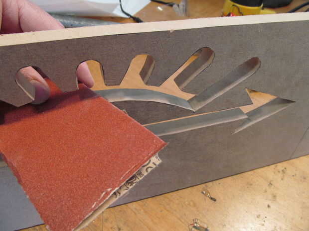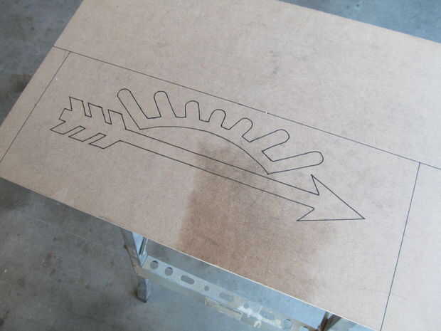 A continuación remonta la plantilla que hice en un pedazo de MDF. Luego utilicé una sierra de calar para recortar la plantilla. Finalmente enarenar hacia fuera cualquier marcas de charla dentro de la plantilla.