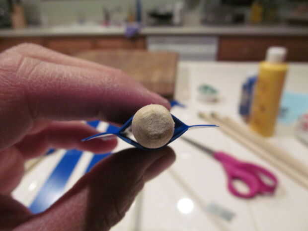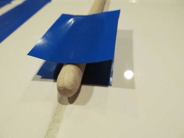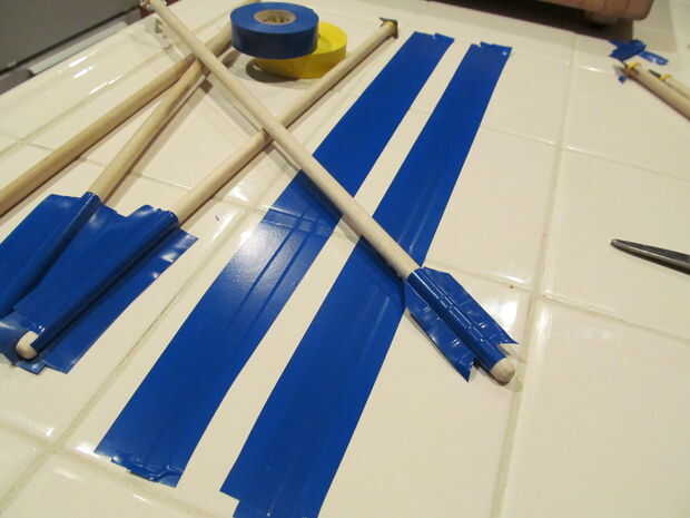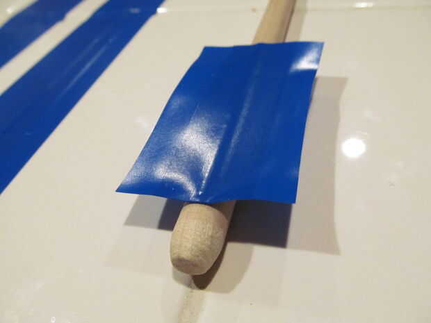 Para hacer la parte de la pluma me comprometido por cinta aislante, cortada a la medida, puesto encendido y cortar a la forma. Las rayas de la flecha impresa en papel de computadora y conectadas a la varilla con cinta de embalaje transparente.