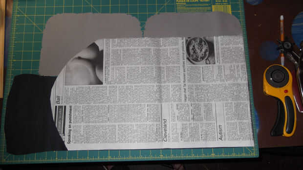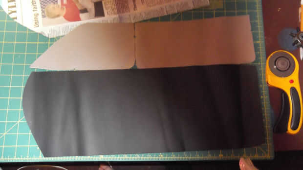 Bien, siga adelante y colocar las piezas de cuero. Si no tienes un trozo lo suficientemente grande para la aljaba toda, colocar las piezas contra el uno al otro pero no superpuestos. Coloque la plantilla sobre la piel. Esto es donde el cortador rotatorio viene muy bien. Si no tienes uno, asegúrese de que tener un par muy afilado de tijeras o un cúter.