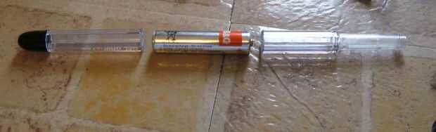 La pluma que usaba tenía una goma base a él, por lo que había recortado a obtener una ventana transparente para la luz a brillar a través de-si su pluma es claro a través de todo el camino, usted no necesita hacer nada.