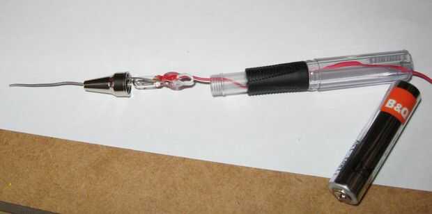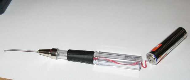 otro extremo de la batería conectada a 60cm o más de alambre para la otra pluma